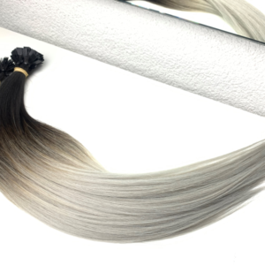 Sibirische Schnitthaar Keratin Extensions – glatte Struktur – 50cm – FB 1a/Grau Ombre